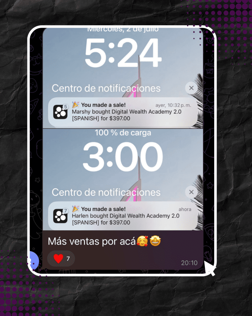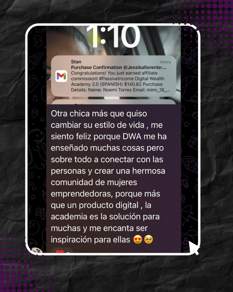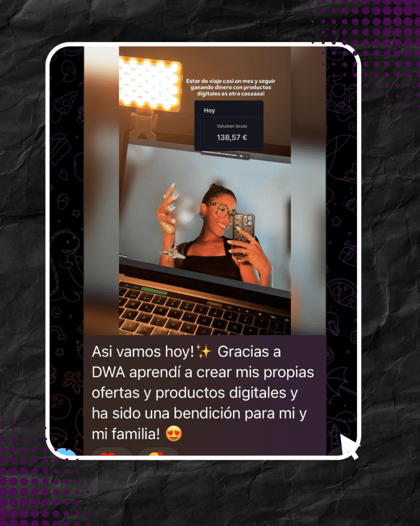 El apoyo es una parte crucial de tu trayecto.La comunidad de DWA está para ayudarte en cada paso del camino. Adicional tendrás acceso a mi grupo privado de Telegram donde puedes hacer todas tus preguntas y hacemos una llamada semanal por Zoom.
