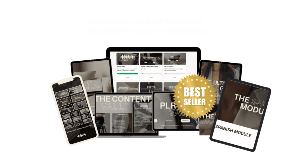 Bueno, lo mejor de este curso es que viene con derechos de reventa (Master Resell Rights en 5 idiomas). “Esto significa que puedes venderlo de inmediato, mientras vas creando tu producto digital para tu sector o empresa, incluso puedes incluirlo en tu portafolio de servicios.”